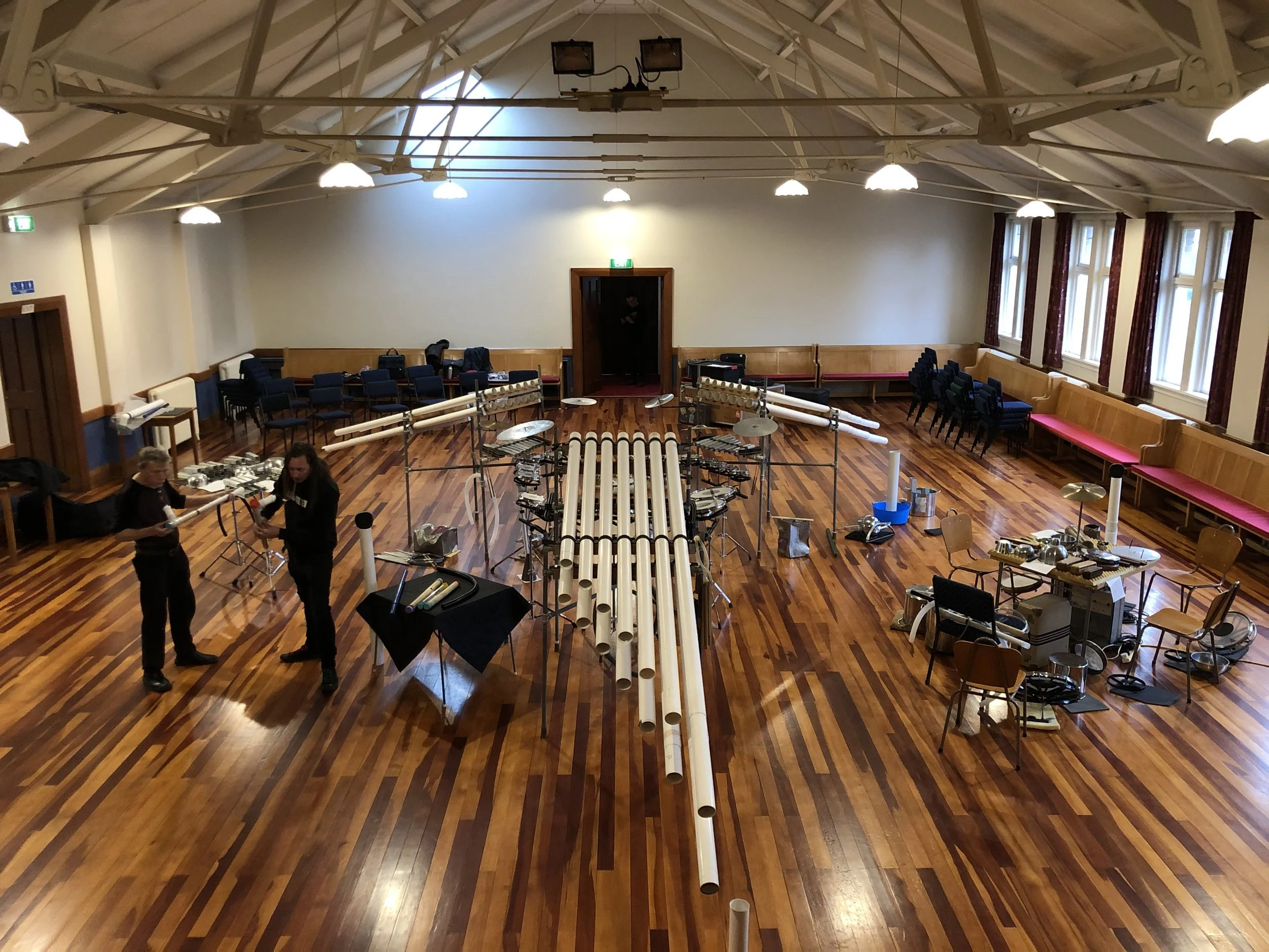The group prefers to be on location at least one day prior to performance for setup and rehearsal, as instruments and lighting can take up to 3-4 hours to assemble. If this is not possible a minimum of 8 hours is required for assembly, set up and relaxation prior to performance.